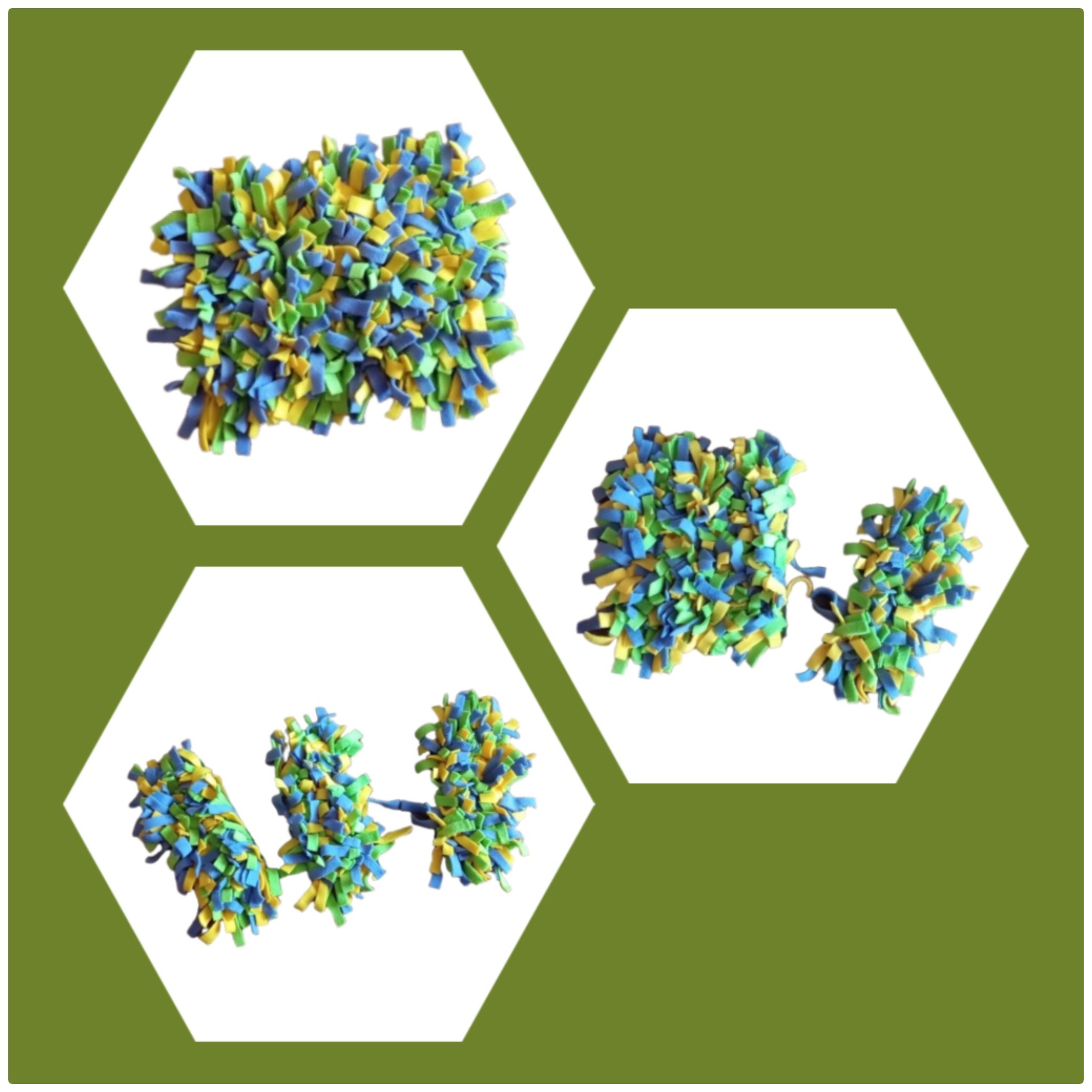 Alfombra olfativa diseñada para estimular el olfato del perro a través de la búsqueda de alimento, promoviendo concentración, calma y una mejor gestión emocional.